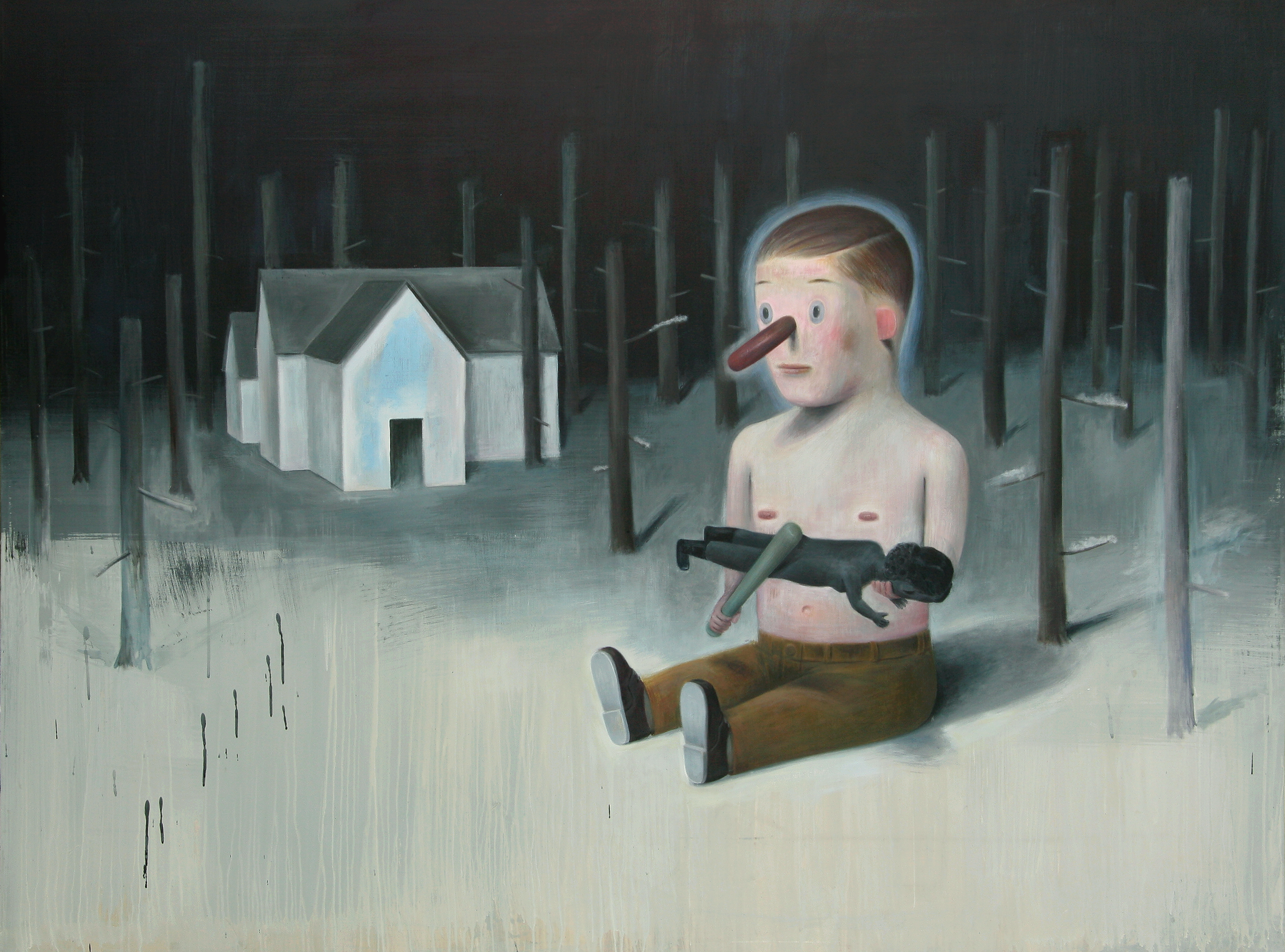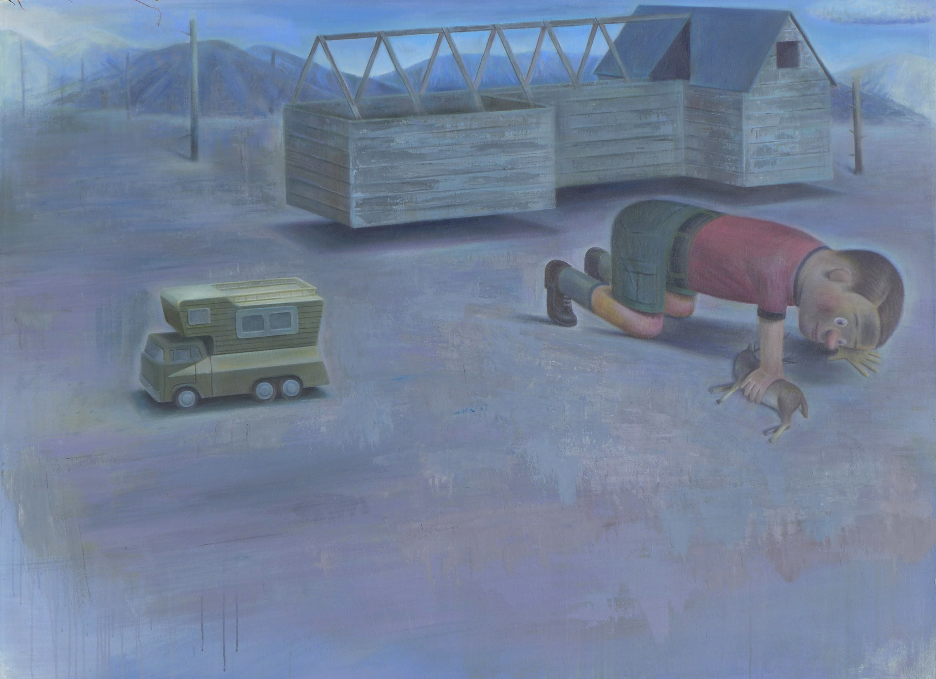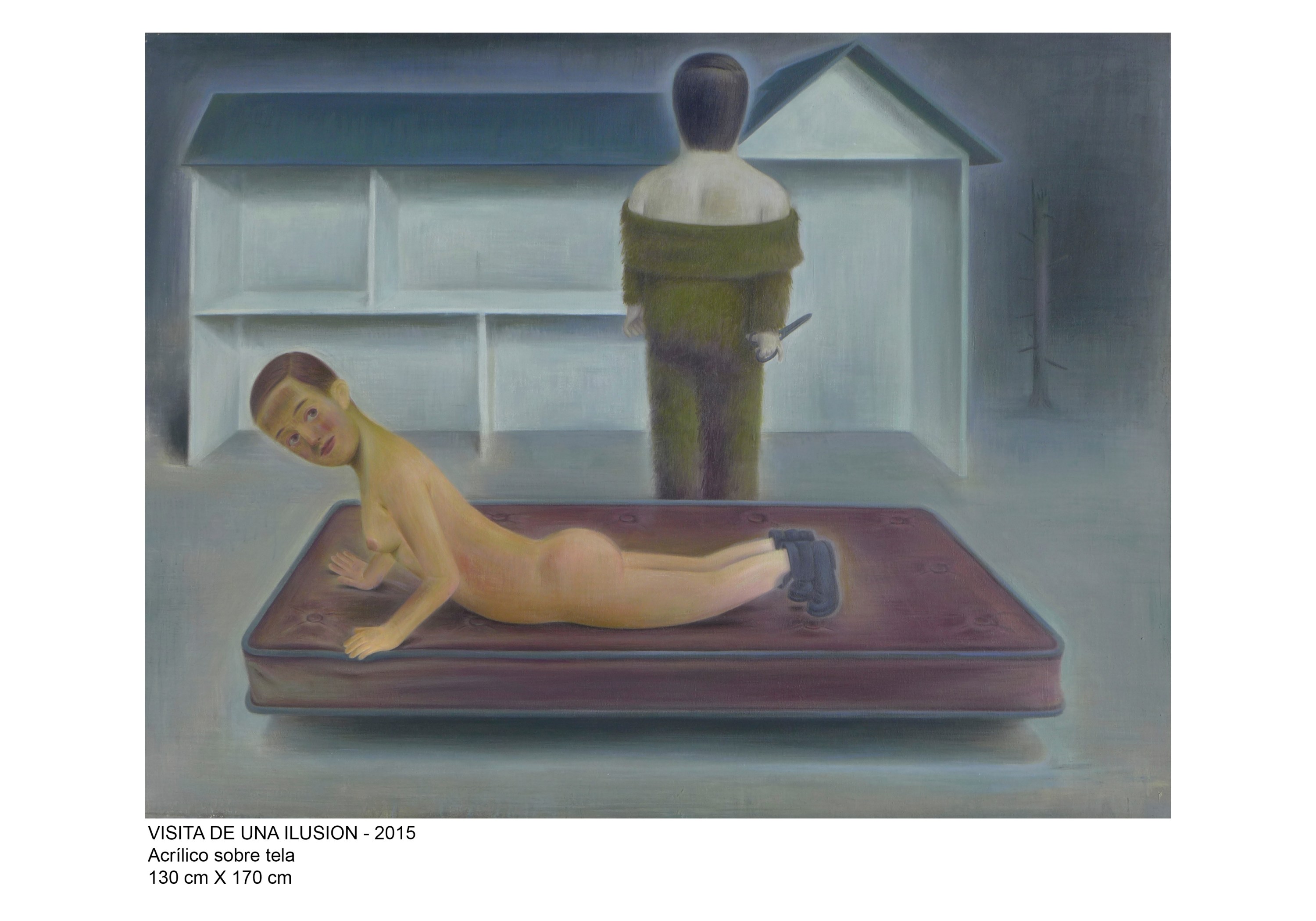 Varias veces escuché y alguna vez leí que los personajes de Torretta y sus temas forman parte del mundo de los sueños. Para mí no es así. Yo creo que surgen de la imaginación. Más precisamente, de cierta imaginación: la que desarrolla un lugar como este. En sus obras podemos ver nuestras ambiciones, nuestros miedos, nuestras maneras de proyectarnos en el tiempo. Incluso algunas de sus pinturas parecen cristalizar deseos inconfesables. Personajes con los ojos vendados y alguna herramienta en la mano que también puede ser un arma merodean sus casitas como guardianes nocturnos. Pero sus casas no son casas, son maquetas. Se trata siempre de una casa imaginada a la que, si algún día la llegaran a construir, muy probablemente bautizarían “La Soñada”.